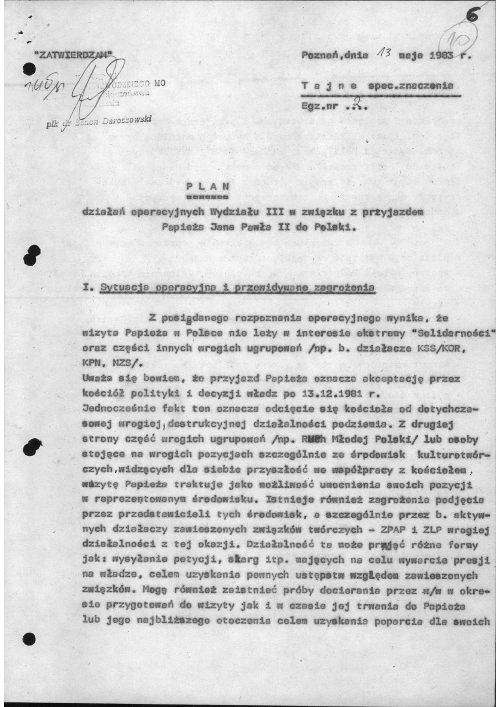 4. Operacja krypt. „Katedra”: organizacja i ochrona porządku w czasie pobytu papieża na terenie kurii poznańskiej.